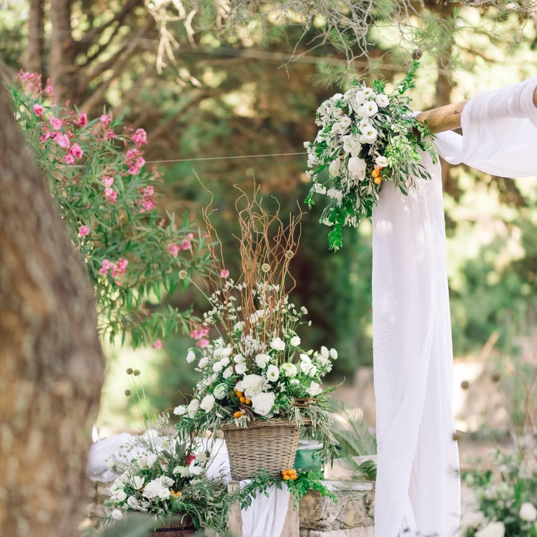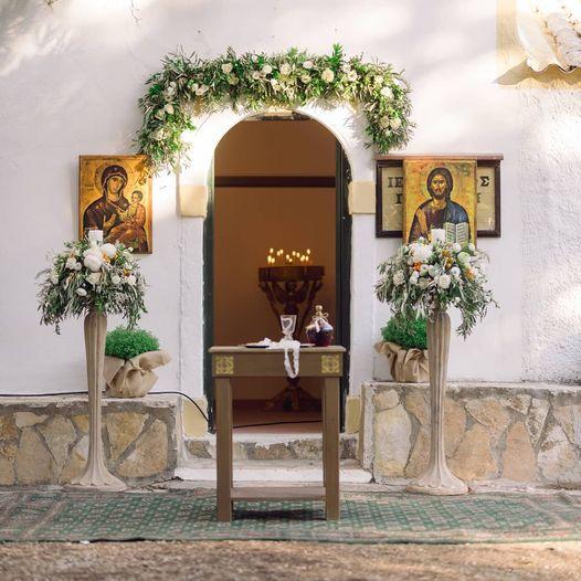 Ελιά, δεντρολίβανο, comcuat, στοιχεία από το νησί της Κέρκυρας και λευκά λουλούδια συνέθεσαν αυτό το πανέμορφο σκηνικό στον Προφήτη Ηλία.